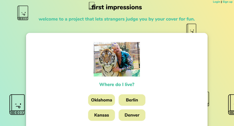 First Impressions is a web-based game that presents users with a photo of a stranger and a quiz about them with general attributes like name, city, job title, and more contentious attributes like race, sexual orientation, dietary restrictions, etc. How much can we truly uncover from an image of a person? How much falls through the cracks?